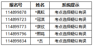 (1)根据上述要求,部分疑似考点选择有误的应届生如下: